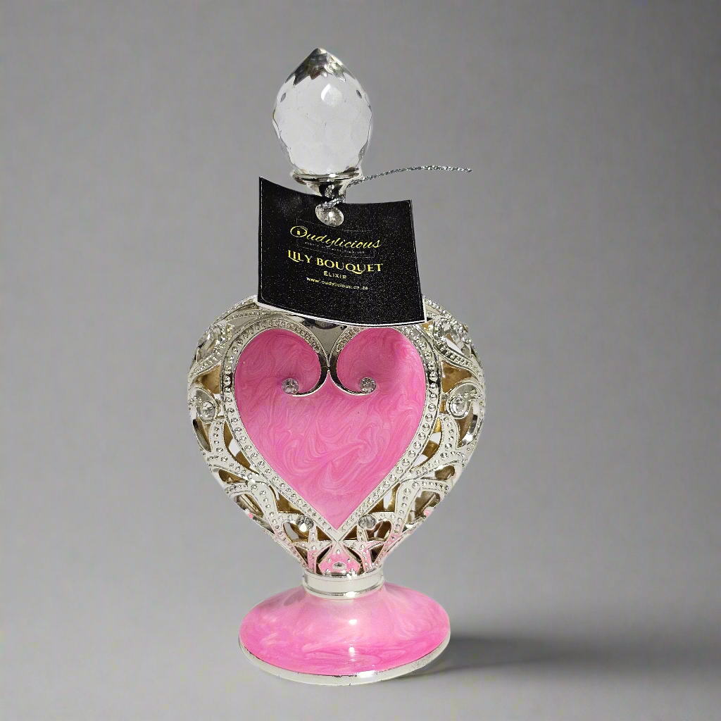 Lily Bouquet is a lavish, intoxicating blend of rich oud, creamy praline, and velvety rose, creating a deeply sensual and luxurious fragrance. The smoky warmth of oud is beautifully softened by the gourmand sweetness of vanilla and praline, while delicate floral notes add a touch of elegance. Long-lasting and opulent, this scent envelops you in an irresistible aura of mystery and romance. If you crave a bold yet refined fragrance that leaves a lasting impression, Lily Bouquet is pure indulgence in a bottle. The main accords are sweet, oud, vanilla, Amber, woody, nutty and powdery.